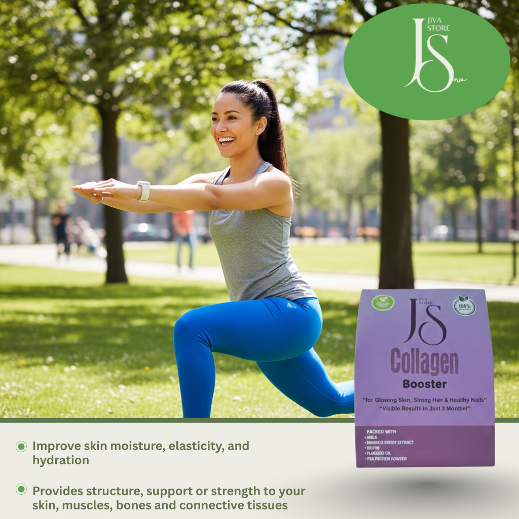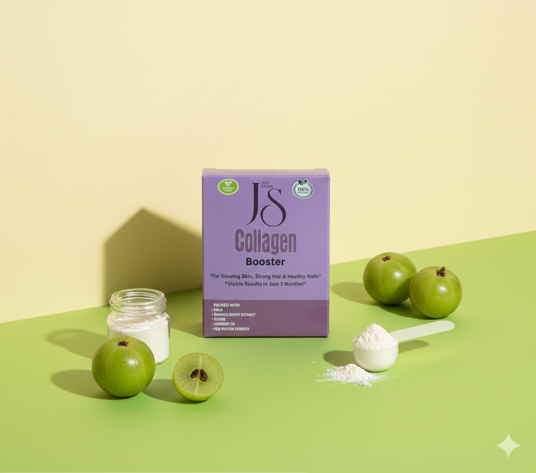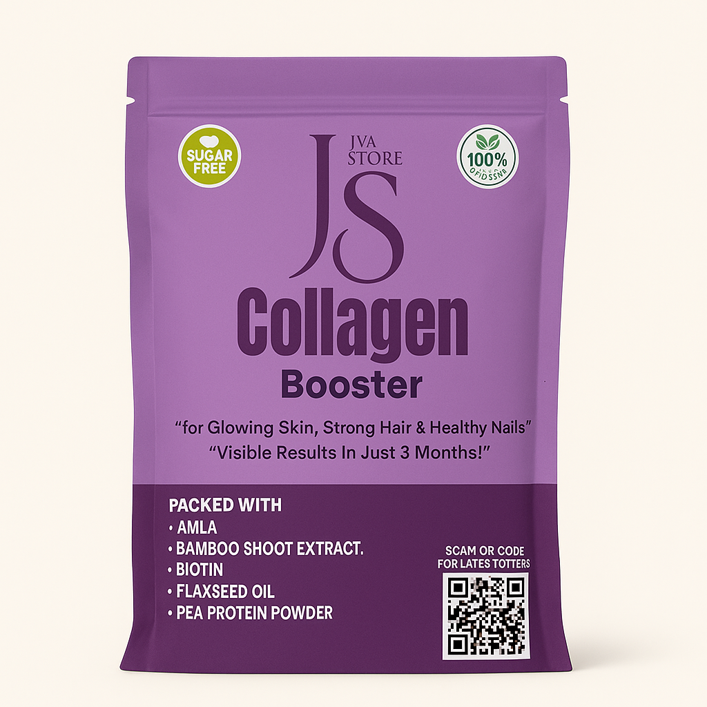 Boost your skin, hair, and overall wellness with our 100% vegan Collagen Booster, powered by Amla, Bamboo Shoot Extract, Flaxseed Oil, and Biotin. This clean, nutrient-rich formula supports natural collagen production—without preservatives, added sugar, or artificial ingredients.